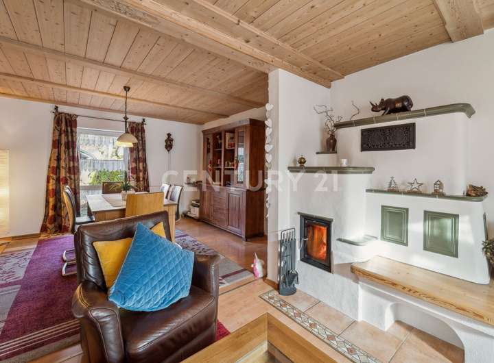+ Gemütliches Wohnzimmer mit Kachelofen