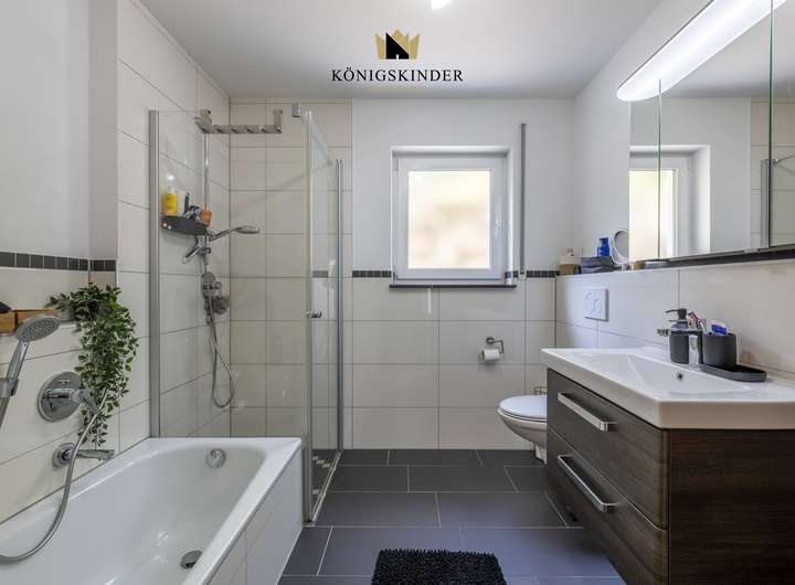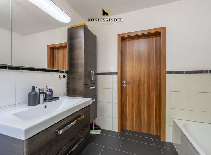 Ergänzt wird das Haus durch eine separate Einliegerwohnung im Erdgeschoss mit ca. 60 m² Wohnfläche. Diese bietet ein Schlafzimmer, einen Wohnbereich sowie eine offene, großzügige Küche und eignet sich ideal als Gästebereich, für Teenager oder zur Vermietung.