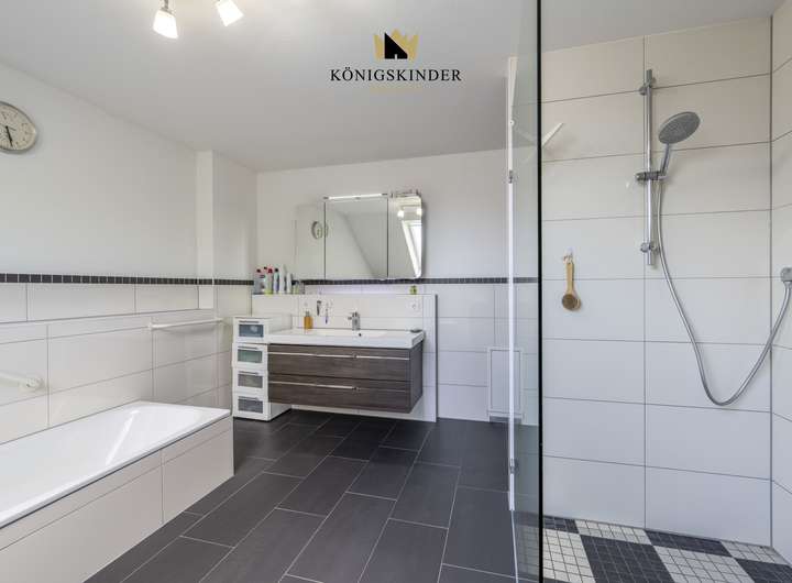 Badezimmer mit Badewanne und ebenerdiger Dusche