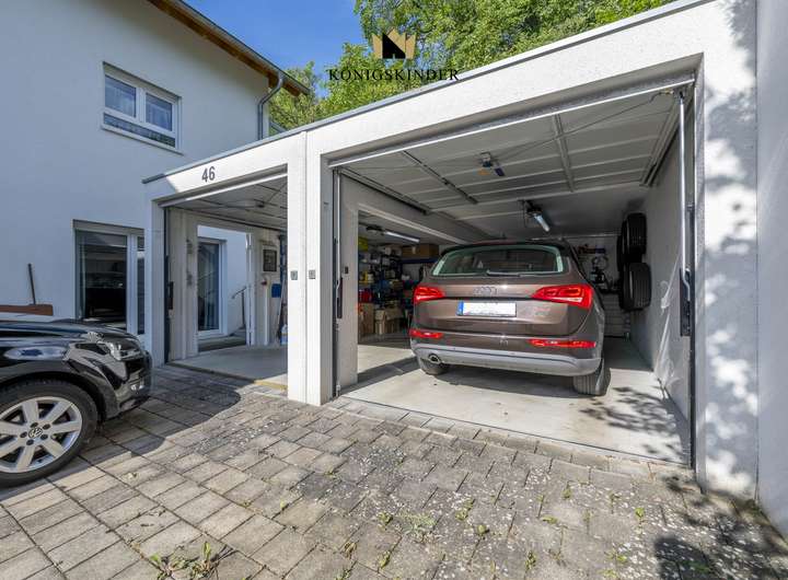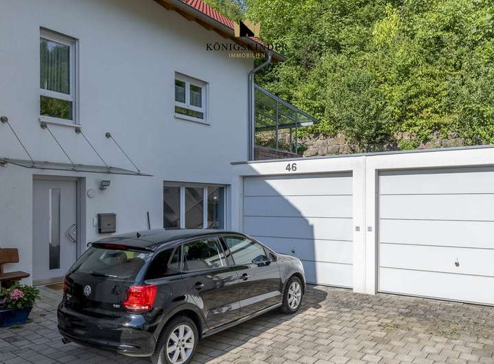 Für Ihre Fahrzeuge stehen zwei extra lange Garagen zur Verfügung sowie zusätzliche Abstellplätze direkt vor den Garagen.