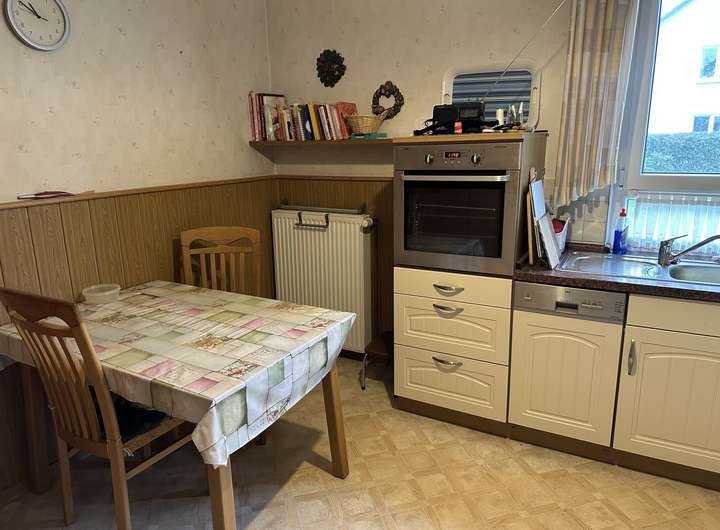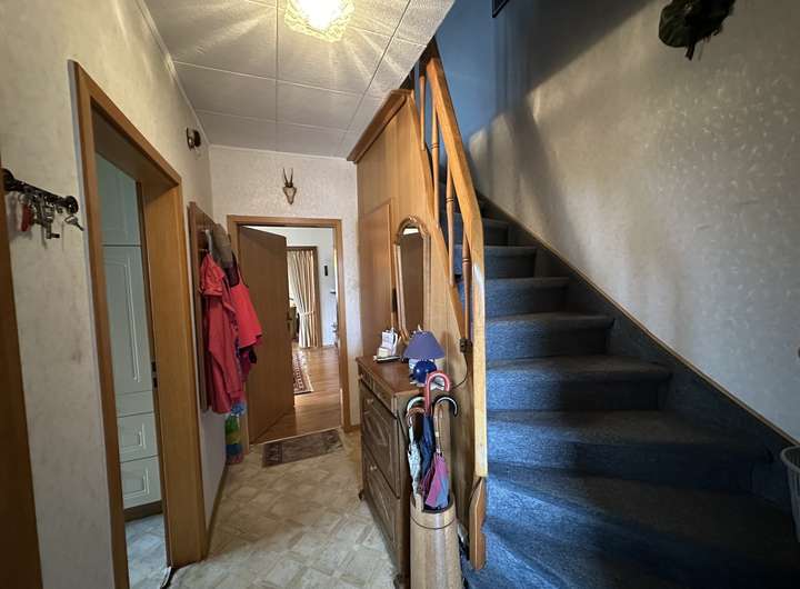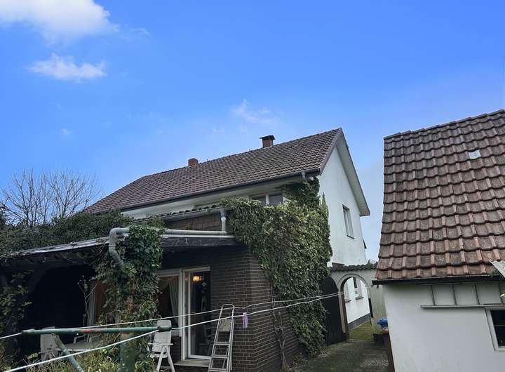 Im Erdgeschoss erwarten Sie eine geräumige Küche mit Speisekammer, ein Flur, ein Gäste-WC sowie ein großzügiges Wohn- und Esszimmer. Drei Schlafzimmer und ein Badezimmer mit Dusche und Badewanne stehen Ihnen im Obergeschoss zur Verfügung. Der Kellerraum bietet zusätzlichen Stauraum. Ein pflegeleichter Garten sowie die Garage und ein Nebengebäude mit Heizungsraum, Abstellraum und kleiner Werkstatt runden das attraktive Angebot ab.