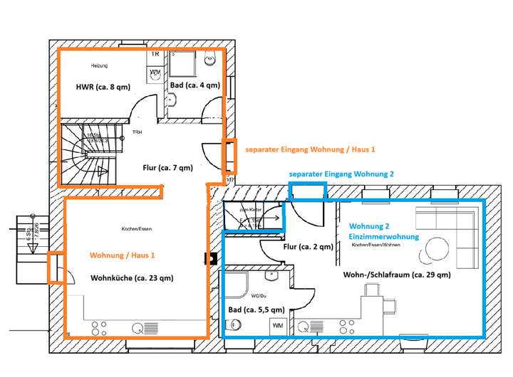 • EFH mit separater barrierearmer Einzimmerwohnung (eigener Hauseingang) – ideal für Familienangehörige, Gäste, Au-pair oder Home-Office
