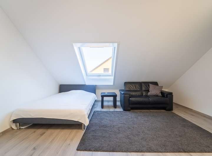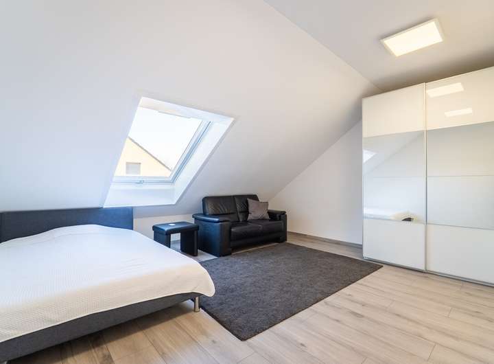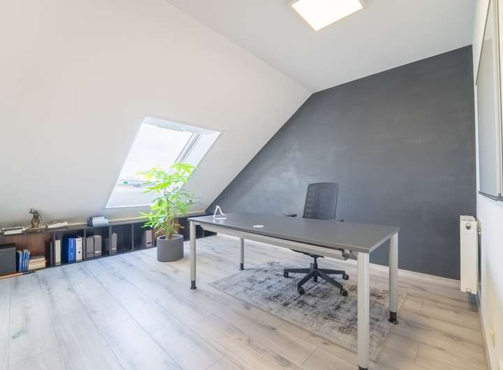 Im Dachgeschoss befinden sich ein weiteres Schlafzimmer, ein helles Büro sowie ein modernes Badezimmer mit Dusche.