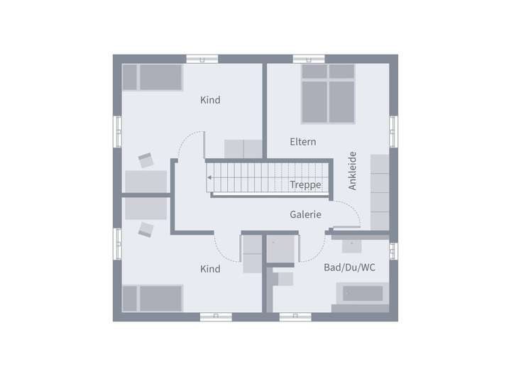 Dieser Architektenentwurf ist ein Planungsvorschlag und dient der Inspiration und Orientierung. Grundrisse, Architektur-Extras, Ausbau- und Effizienzhaus-Stufen werden individuell an Ihre Wünsche und Bedürfnisse angepasst.
