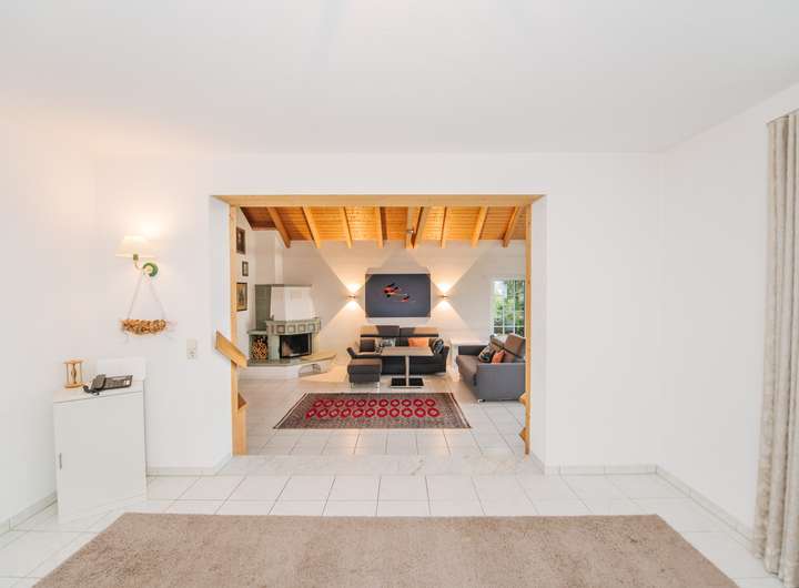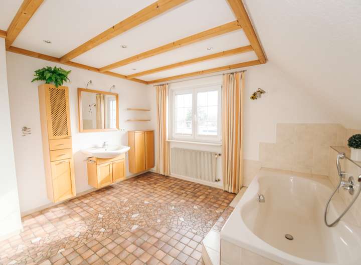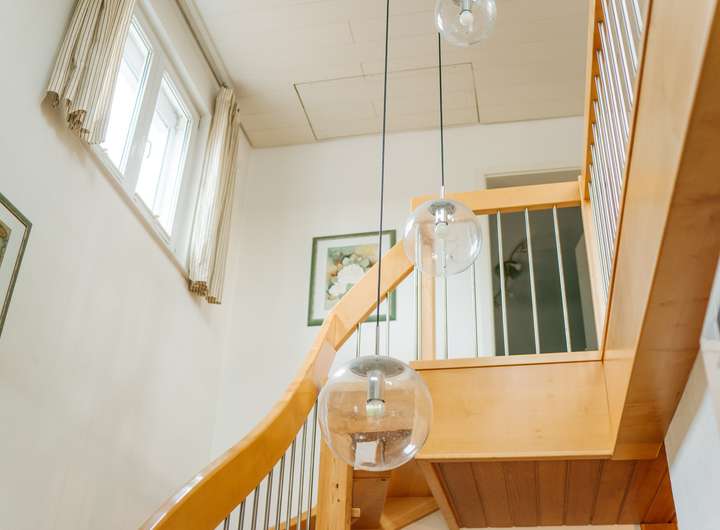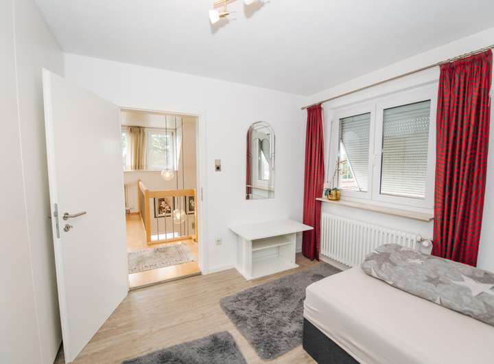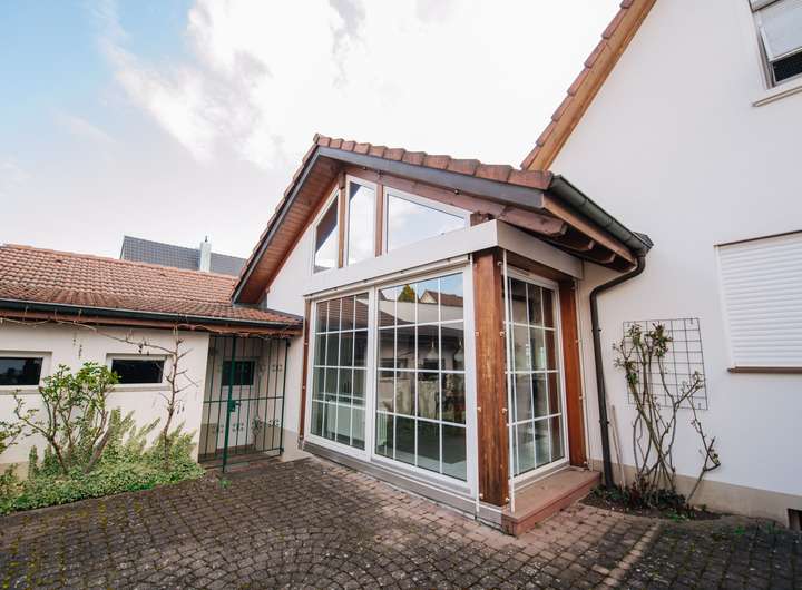 In diesem Schmuckstück offenbart sich ein wahrer Wohntraum auf einem ca. 580 m² großen Grundstück. Das Einfamilienhaus wurde um einen lichtdurchfluteten Anbau erweitert, der sich mit seiner schönen Architektur perfekt dem Ensemble anpasst. Eine offene, luftige Dachkonstruktion, zahlreiche Fensterflächen und Terrassentüren schaffen ein herrliches Raumgefühl - ein wunderbarer Lebensort für Familie und Freunde. Charakteristisch sind die Sprossenfenster, die grünen Klappläden und das rote Dach. Die Elemente verbinden sich zu einem architektonischen Gesamtbild von feiner Eleganz und Tradition. Das Herzstück des Hauses bildet das großzügige Wohnzimmer mit seinem einladenden Kamin, der an kühleren Tagen für wohlige Wärme sorgt. Von hier öffnet sich der Blick in den liebevoll angelegten Garten, in dem sich die Natur in vollen Zügen genießen lässt. Die südöstlich ausgerichtete Terrasse ist ideal, um den Tag mit einer Tasse Kaffee in der Morgensonne zu beginnen. Im Erdgeschoss befinden sich außerdem ein vielseitig nutzbares Zimmer, eine Küche sowie ein modernisiertes Duschbad. Das Obergeschoss begeistert mit zwei hellen Schlafzimmern und einem großzügigen Masterbad im mediterranen Stil, ausgestattet mit Dusche und Wanne für entspannte Wellnessmomente. Das Haus ist vollständig unterkellert und bietet reichlich trockenen und sauberen Stauraum. In den gepflegten Kellerräumen kann man ebenso einen Hobbyraum, eine Werkstatt oder einen Fitnessbereich unterbringen. Der solide gebaute, in die Architektur des Hauses integrierte, große Carport stellt reichlich Platz für mehrere Fahrzeuge zur Verfügung, während ein elektrisches Tor sicheren Zugang zum eingezäunten Grundstück gewährleistet. Die herrliche Gartenlandschaft wird an heißen Tagen bequem mit einer automatischen Bewässerungsanlage versorgt und sorgt für gepflegtes Grün. Dank der leistungsstarken PV-Anlage mit 10 KW-Speicher genießt man umweltfreundliche Energie und langfristige Ersparnisse. Im Wohnzimmer und in einem Schlafzimmer im Obergeschoss schaffen hochwertige Klimageräte ein stets angenehmes und frisches Raumklima. Im hinteren Bereich des Grundstückes befindet sich ein nützlicher Schopf - ideal zu Lagerung von Brennholz, Werkzeug oder Fahrrädern. Dieses Haus ist weit mehr als nur ein Wohnsitz – es ist ein Refugium für stilvolles Wohnen. Erleben Sie, wie zeitlose Architektur und moderne Annehmlichkeiten zu einer harmonischen Einheit verschmelzen. Ein seltener Schatz, der darauf wartet, entdeckt zu werden.