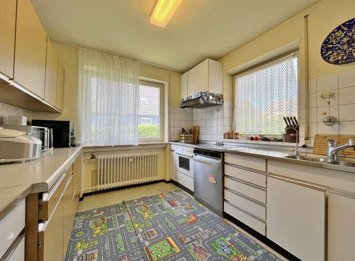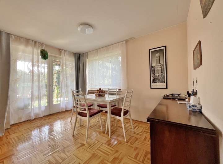 Auf einem Eckgrundstück, eingebettet in einen eingewachsenen Garten mit Baumbestand, befindet das im Jahr 1967 erbaute Wohnhaus. Die zeitlose Architektur verbindet klare Linien mit harmonischen Proportionen - eine Immobilie, die eine klassische Ausstrahlung vermittelt. Die vielen Möglichkeiten, die man mit dieser Liegenschaft realisieren kann, reichen vom großzügigen Einfamilienhaus, über ein Mehrgenerationenhaus bis hin zu drei separaten Einheiten. Das Erdgeschoss ist aufgeteilt in ein Wohnzimmer, eine Küche mit einer angrenzenden, praktischen Speisekammer, zwei Schlafzimmer, ein Familienbad mit Wanne und Dusche und ein separates Gäste-WC. Viele Fenster fluten die Räume mit Licht und geben den Blick in den verwunschenen Garten frei. Das Dachgeschoss stellt so viel Fläche zur Verfügung, dass man hier den großzügigen Schlafbereich für die gesamte Familie unterbringen oder mit den vorhandenen Anschlüssen eine eigene Einheit gestalten kann. Drei Zimmer, ein Abstellraum und ein Duschbad lassen eine vielfältige Gestaltung zu. Das Untergeschoss befindet sich in angenehmer Hanglage mit eigenem Zugang und umfasst zwei Zimmer mit Tageslicht sowie ein Duschbad - ideal für die Nutzung eines Appartements oder als Hobbybereich. Ergänzend stehen praktische Versorgungs- und Kellerräume für zusätzlichen Stauraum zur Verfügung. Eine große Garage und ein Carport ermöglichen bequemes Parken und bieten Platz für Fahrräder oder weiteres Equipment.