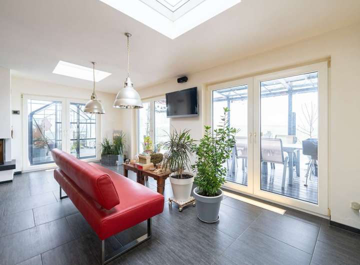 Die Raumaufteilung insbesondere im Gartengeschoss ist sehr großzügig.