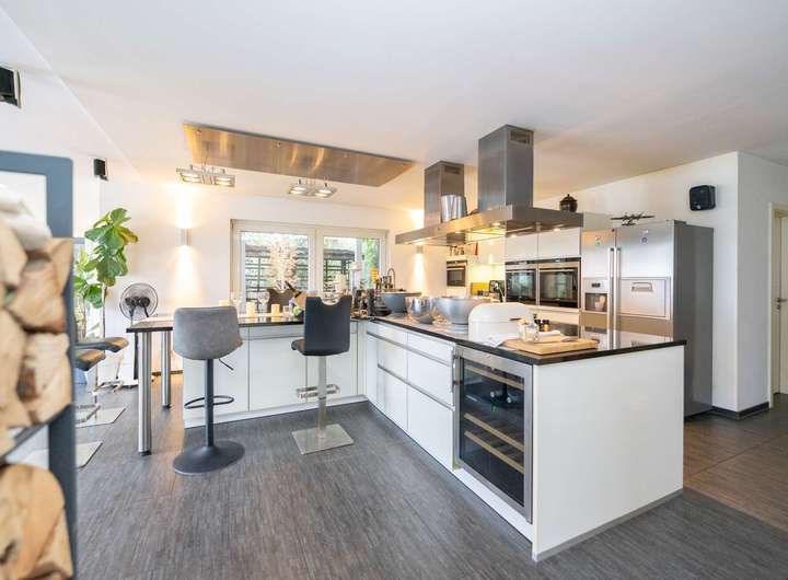- hochwertiger Einbauküche mit Granitarbeitsplatte, Weinkühlschrank, 2 Backöfen,
