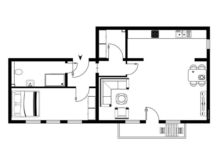 Das Herzstück der Wohnung bildet der großzügige Wohn- und Essbereich mit einer offenen, modernen Einbauküche. Von hier aus gelangen Sie auf den Balkon, auf dem Sie herrliche Stunden in der Sonne verbringen können.