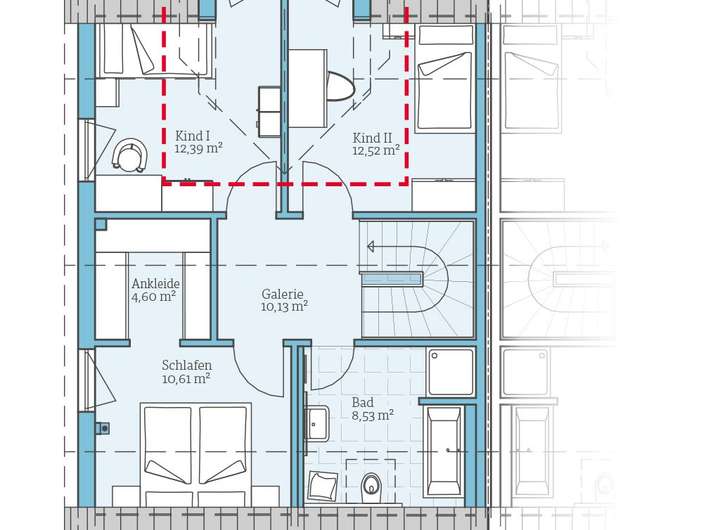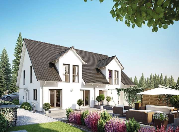 Durch den im Preis inbegriffenen Zwerchgiebel finden allein im Dachgeschoss zwei große Kinderzimmer viel Platz für die Kleinen.