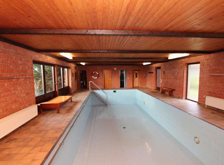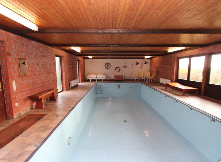 Südlich des Bungalows wurde ein weiteres massives Gebäude im Stile des Wohnhauses errichtet, in dem sich das Schwimmbad befindet. Eine alternative Nutzung dieses Bereiches ist problemlos umsetzbar. Näheres dazu erläutern wir Ihnen gerne.