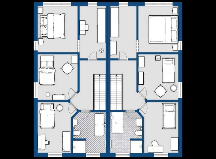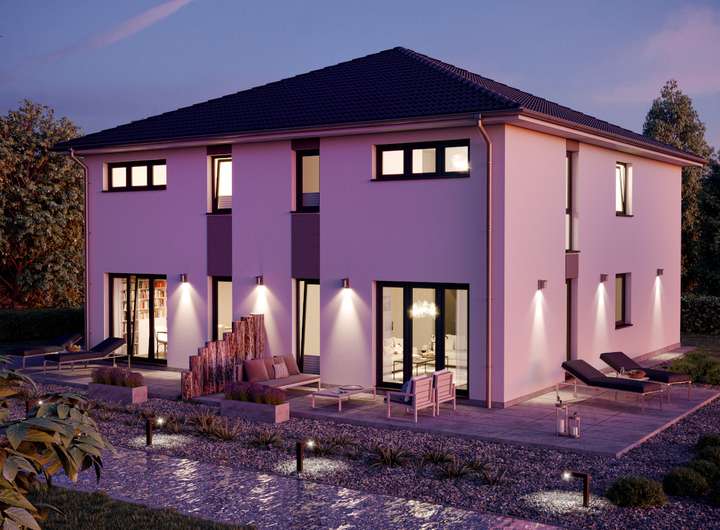 Die Doppelhaushälfte besticht durch eine hochwertige Ausstattung und modernes Design, das ein professionelles Arbeitsumfeld und ein angenehmes Wohnambiente schafft. Große Fensterfronten sorgen für helle Räume, während großzügige Außenanlagen Raum für Erholung bieten.
