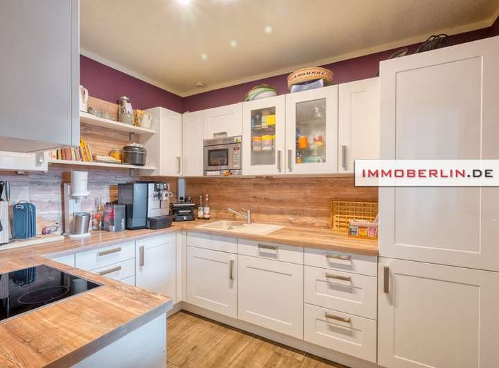 Zur Steigerung der Gemütlichkeit lässt sich der hübsche Kaminofen befeuern. Die 2015 installierte Einbauküche, das taghelle, in 2023 sanierte Badezimmer sowie der neuwertige Fliesenboden im Flur und in der Küche runden die Ausstattung perfekt ab.