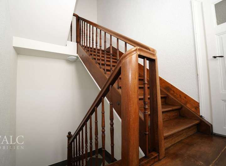 Im hinteren Teil des Hauses befindet sich der Zugang zum Ober- sowie zum Dachgeschoss. Die Etage darüber überzeugt mit einer ähnlich durchdachten Aufteilung wie die Einheit im Erdgeschoss. Ein einladender Flur bildet das zentrale Verbindungselement und führt Sie harmonisch durch die gesamte Wohnung.
