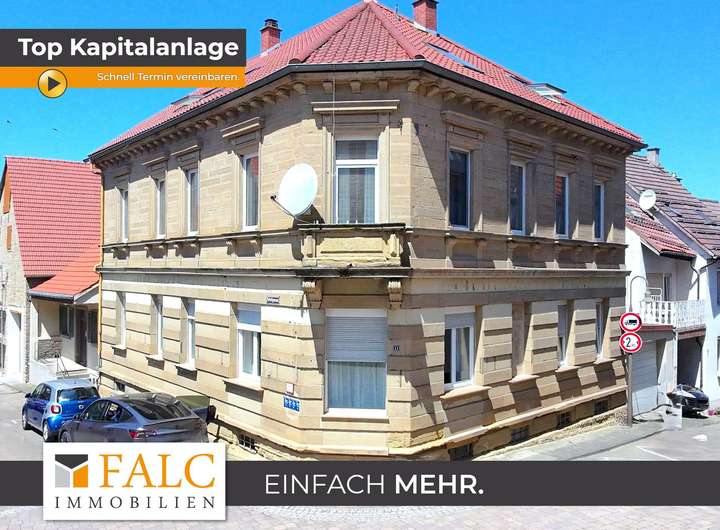 Herr Andreas Franzke von FALC Immobilien Heilbronn freut sich, Ihnen dieses charmante Mehrfamilienhaus mit mediterranem Altbauflair präsentieren zu dürfen. Das im Jahr 1895 aus hochwertigem Sandstein errichtete Prachtstück überzeugt nicht nur durch seine beeindruckende Bauweise mit rund 50 cm starken Außenwänden, sondern auch durch seine ästhetisch ansprechende Architektur, die zeitlose Eleganz ausstrahlt.