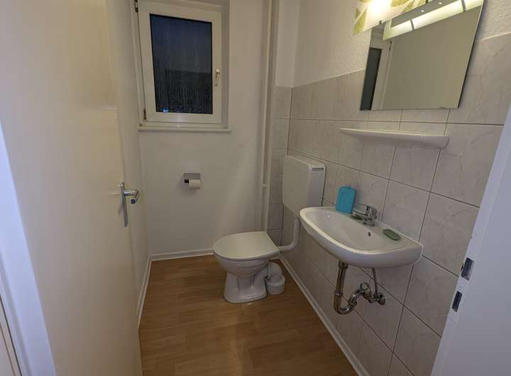 Die Böden sind überwiegend mit Laminat oder Fliesen versehen. Das Haus wird renoviert übergeben, Restarbeiten im Außenbereich werden im Frühjahr angefangen.