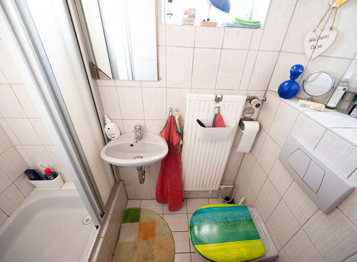 - Tageslicht-Bad mit Dusche, Waschbecken und WC im OG