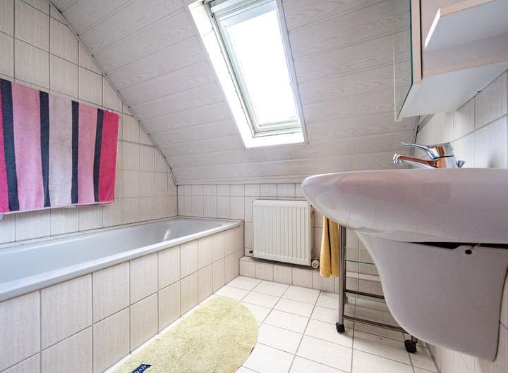 - Tageslicht-Bad mit Badewanne und Waschbecken im DG