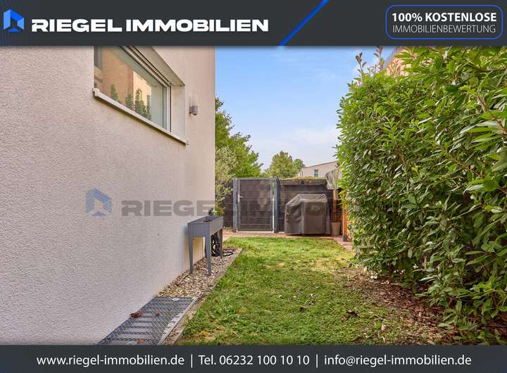 Der Außenbereich wurde bewusst pflegeleicht gestaltet – ideal für Eigentümer, die keinen großen Garten benötigen, jedoch nicht auf einen privaten Rückzugsort im Freien verzichten möchten. Die sonnige Süd-Ost-Terrasse sowie ein seitlich angelegter, schmaler Grünstreifen schaffen eine angenehme Atmosphäre im Außenbereich – einladend und charmant, dabei mit minimalem Pflegeaufwand verbunden.