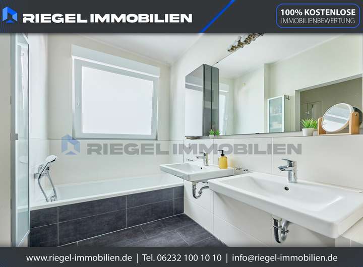 Diele, Tageslichtbadezimmer mit Badewanne, Dusche, 2 Waschbecken und Toilette, 3 Zimmer