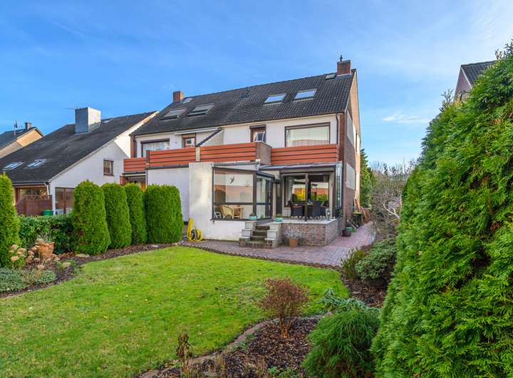 Mit diesem Erbbaurecht haben Sie die Möglichkeit, eine großzügige Doppelhaushälfte in Bremen-Neuenland (Neustadt) ohne einen anteiligen Grundstückskaufpreis aufwänden zu müssen, zu erwerben. Das Wohngebäude wurde 1972 errichtet und überzeugt durch seine solide Bauweise und geräumige und gleichzeitig zweckmäßige Raumaufteilung. Das Erdgeschoss verfügt über das großzügige Wohn- und Esszimmer, Wintergarten, Wohnküche, Eingangsdiele, G-WC, Flur und Treppenaufgang zum Ober- und Dachgeschoss. Im OG befinden sich insgesamt drei Zimmer, das geräumige Vollbad, Flurbereich und der gartenseitige Balkon am Elternzimmer. Im wohnlich gestalteten Dachgeschoss befindet sich ein weiteres Zimmer, Küchenraum sowie ein zweckmäßiges Duschbad. Ausreichend Nutzfläche steht im Vollkeller mit insgesamt ca. 60 m² in verschiedenen Räumen zur Verfügung. Der ebenfalls im Kellerbereich installierte Garagenbereich (ca. 6,20 m x 3,00 m) erweitert Ihre Möglichkeiten. Insgesamt ist die Immobilie als modernisierungswürdig einzustufen.