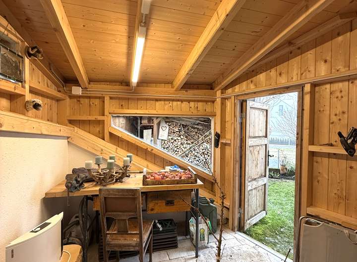 Derzeit wie folgt genutzt: 2x Kellerraum / Hobbyraum mit ebenerdigem Ausgang in den Garten und Dusche, Heizung, Pellet-Raum