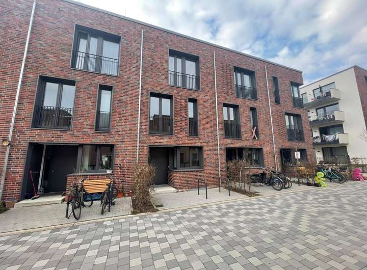 Auf einer Wohnfläche von mehr als 128 m² bietet dieses 2021 erbaute Reihenhaus viel Raum für jedes Familienmitglied. Verteilt auf drei Etagen, verfügt das schöne Mietobjekt über ein Wohn- und Esszimmer mit offenem Küchenbereich, vier Schlafzimmer, zwei Badezimmer und ein Gäste-WC.