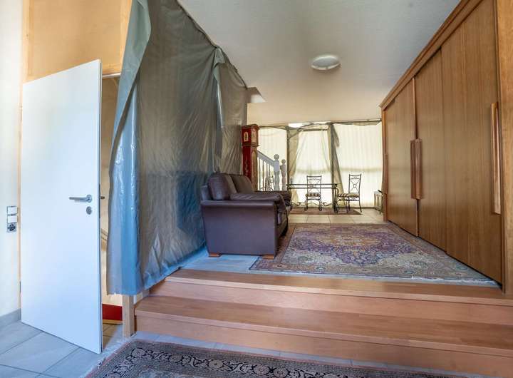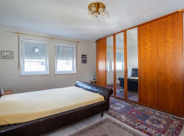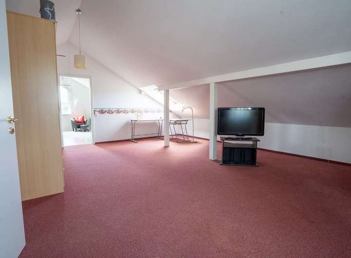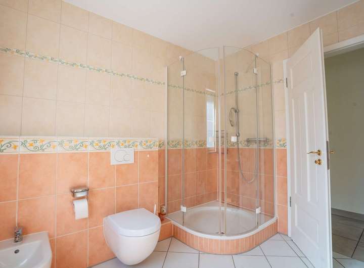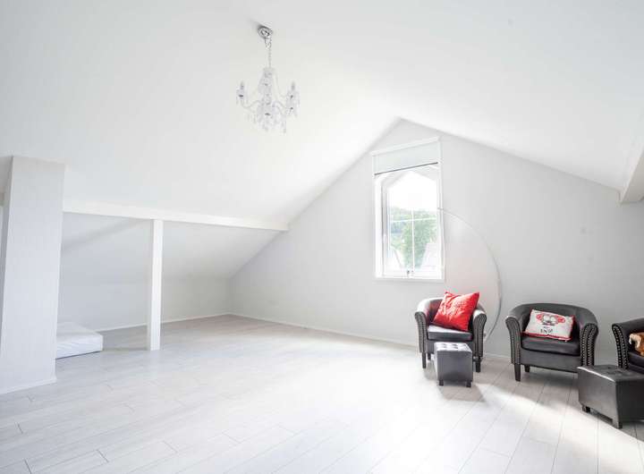 Das Obergeschoss beeindruckt mit einer Galerie über dem Wohnraum, die dem Haus ein besonders luftiges Ambiente verleiht. Rechts und links der Galerie befinden sich jeweils zwei Schlafzimmer und ein Badezimmer. Beide Bäder sind hochwertig ausgestattet - jeweils mit Doppelwaschbecken und Bidet. Eines der Bäder verfügt zusätzlich über eine Badewanne, das andere über eine komfortable Dusche. Insgesamt bietet das Obergeschoss vier Schlafzimmer und zwei Bäder - reichlich Platz und Komfort für die ganze Familie. Vom Obergeschoss führt eine Treppe ins Dachgeschoss mit großem Wohnbereich, zusätzlichem Schlafzimmer und Abstellraum - ideal als Gäste-, Hobby- oder Rückzugsbereich.