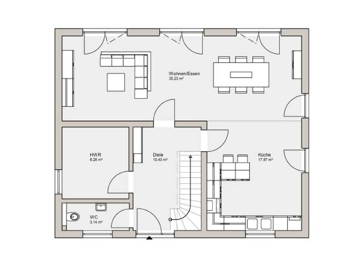 Lassen Sie sich begeistern von 128 m² im Architektenhaus Jaro. Der Grundriss überzeugt in jeder Hinsicht, denn im Erdgeschoss erwartet Sie ein großzügiger, offener Wohnbereich mit Essbereich und einer offenen Küche. Hier werden Wohnträume wahr, denn für jedes Familienmitglied findet sich hier genug Platz für das wahre Leben! Nicht fehlen dürfen auf der Etage ein Gäste-WC und der Hauswirtschaftsraum.