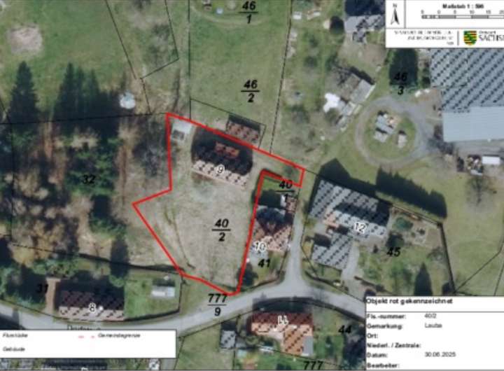 ruhigen Seitenstraße und besteht aus dem Flurstück Nr. 46/2 der Gemarkung Lauba, bebaut mit einem unter Denkmalschutz stehenden Wohnhaus.