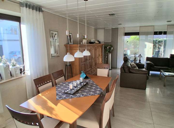 Das Herzstück der Wohnung bildet der helle Wohn- und Essbereich mit Kamin, der besonders in den kühleren Monaten für eine angenehme Atmosphäre sorgt. Eine Einbauküche ist bereits vorhanden und fügt sich harmonisch in das hochwertige Gesamtbild ein.