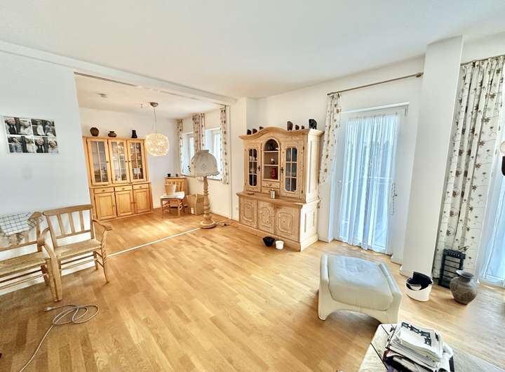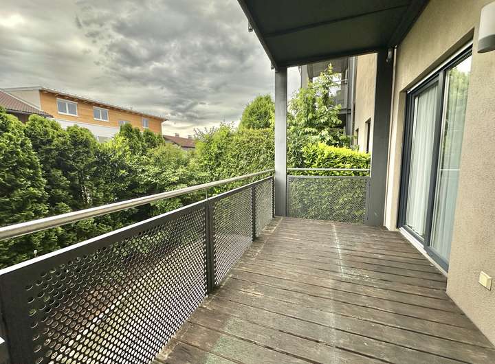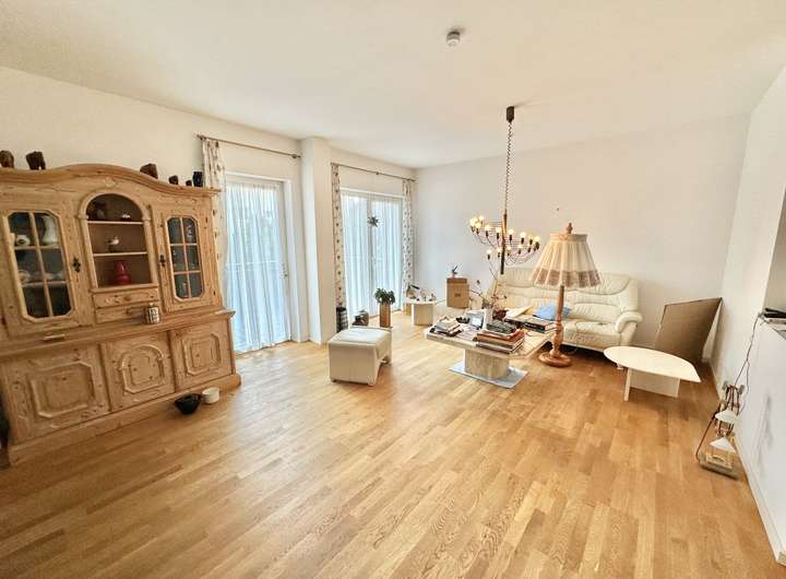 - Großzügiges Wohnzimmer mit Zugang zum Balkon und einem weiteren Freibereich – ideal für Liegen und einen Esstisch im Freien um den Feierabend und das Wochenende zu genießen
