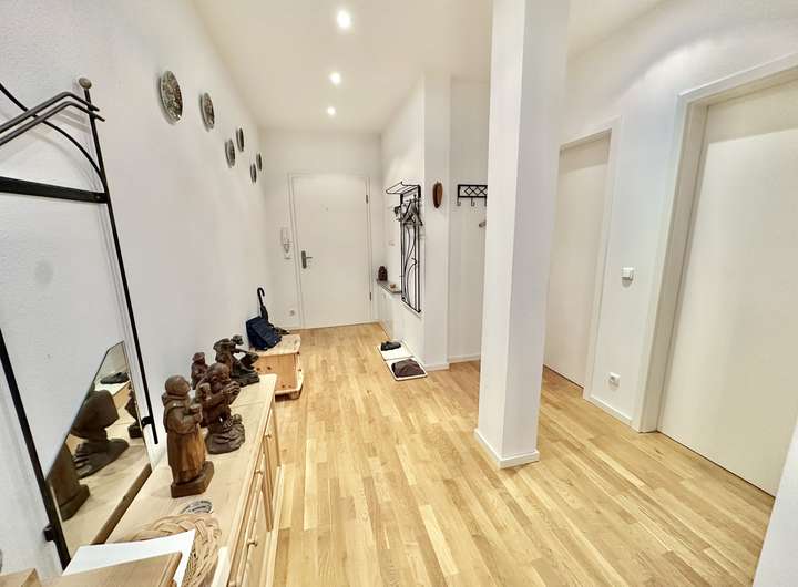 Die Wohnung besticht durch ihre großzügige, helle Raumgestaltung, hochwertige Holzböden und eine angenehme Deckenhöhe von ca. 2,70 m.