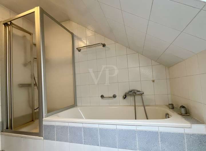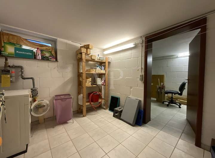 Das Familienbadezimmer, das Ihnen neben einem der Schlafzimmer auf dieser Wohnebene zur Verfügung steht, ist mit einer Badewanne und einer separaten Dusche ausgestattet. Ein zusätzliches Gäste-WC im Erdgeschoss komplettiert das Angebot. Ein weiteres Highlight ist das großzügige Studio (ca. 23 m²) im Dachgeschoss. Dank der Velux-Fenster aus dem Jahr 2020 genießen Sie hier eine angenehme Lichtstimmung – ideal für Hobbys, kreatives Arbeiten oder als eigener Rückzugsort. Zwei praktische Abstellräume bieten Stauraum im Haus, während der Teilkeller mit drei separaten Kellerräumen ausreichend Platz für Hobby, Vorräte oder Hauswirtschaft bereitstellt. Die zugehörige Garage auf dem, der Häuserzeile vorgelagerten Garagenhof sorgt für komfortables und sicheres Parken.