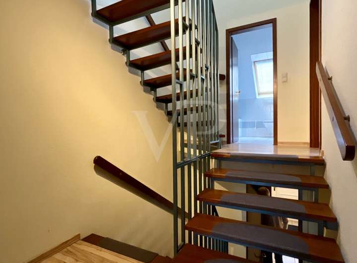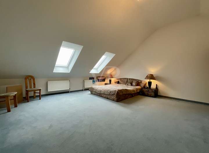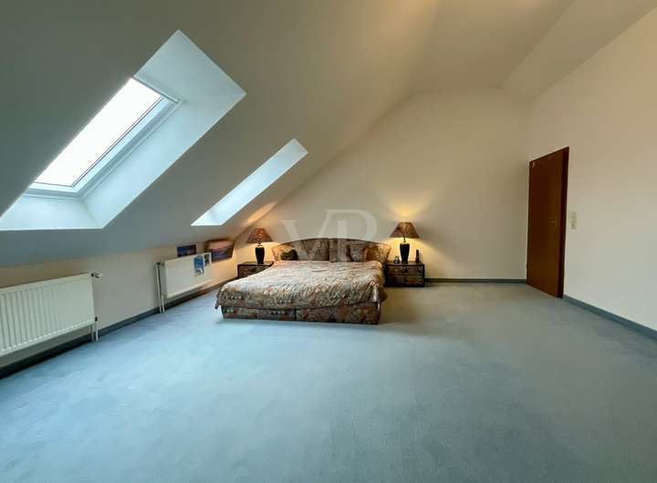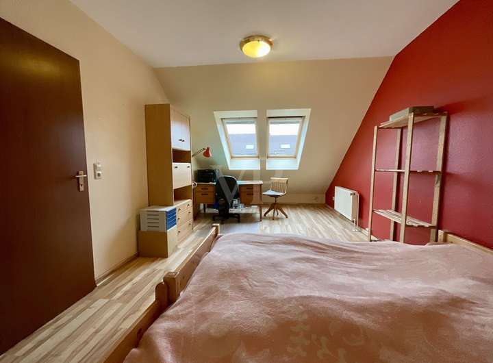 Entspannen könne Sie auch in den oberen Wohnebenen des Hauses, die Sie über die offen gehaltene Harfentreppe erreichen. Hier befinden sich drei gut geschnittene Zimmer (ca. 15 m², 14 m² und 13 m²), die sich flexibel als Kinder-, Gäste- oder Arbeitszimmer nutzen lassen.
