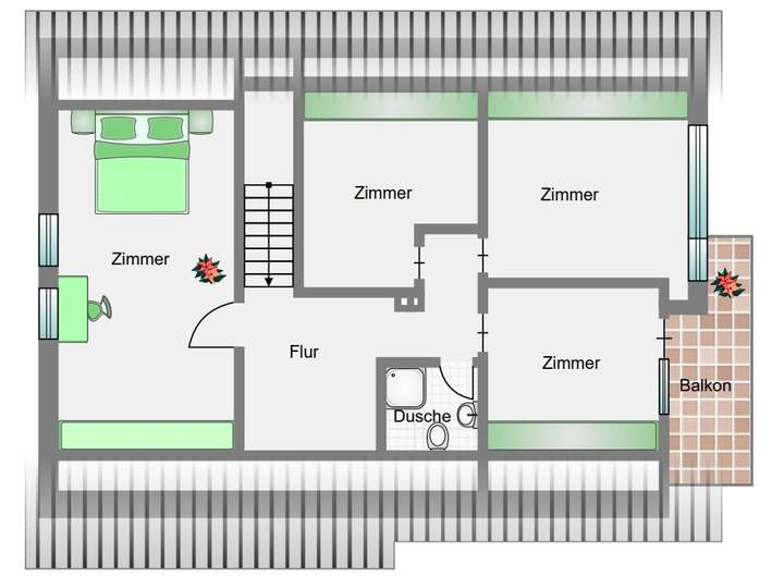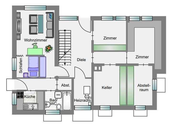 Im Dachgeschoss stehen Ihnen vier weitere Zimmer, teils mit Balkon, sowie ein Badezimmer zur Verfügung. Im Untergeschoss befinden sich der Heizraum und zwei Kellerräume sowie zwei weitere, vielseitig nutzbare Zimmer. Durch einen separaten Eingang gelangen Sie in die Einliegerwohnung, die mit einem Wohn-Esszimmer, einer offenen Küche sowie einem Badezimmer ausgestattet ist.