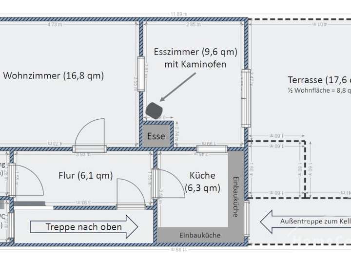 Eine monatliche Nutzungsgebühr für die Einbauküche in Höhe von 40,00 € ist in der Kaltmiete enthalten.