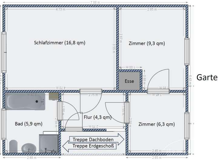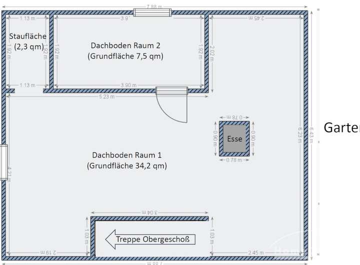 Im Dachgeschoss ist eine Nutzfläche von ca. 44 m² verfügbar.