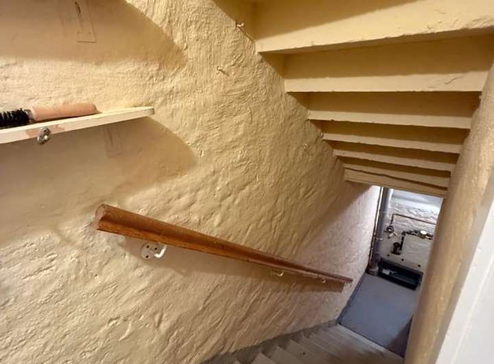 die Dämmung im Dachboden. 2025 wurden die Giebelwand in den Zimmern unten und oben mit 3cm Silikatplatten gedämmt und mit Rauputz verputzt.