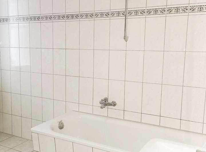 Die Küche und Bad haben ein Fenster, im Bad ist eine Wanne mit Duschmöglichkeit, ein Waschbecken und Platz / Anschluss für eine Waschmaschine.
