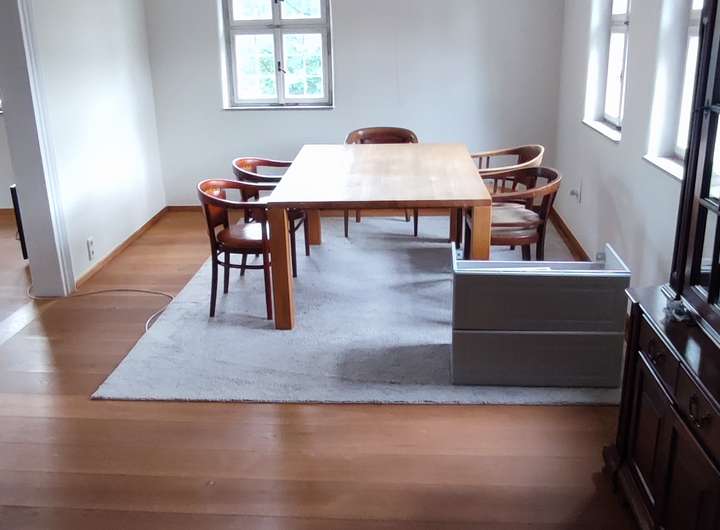 Auf ca. 100 m² Wohnfläche verteilen sich vier großzügige Zimmer, die ein einzigartiges Wohngefühl in historischer Atmosphäre bieten. Die Wohnung wurde 2018 kernsaniert und verbindet den Charakter des Schlosses mit modernem Wohnkomfort. Ausgestattet ist sie mit hochwertigem Eichenvollholzboden, Fußbodenheizung, einer edlen Marmorküche sowie einer zeitgemäßen Dämmung.