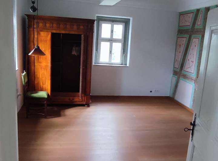 Das Wasserschlösschen in Kleinbardorf, erbaut im Jahr 1590, steht unter Denkmalschutz und befindet sich seit 1965 im Familienbesitz. Die angebotene Wohnung liegt im 2. Obergeschoss und ist über eine charmante Wendeltreppe erreichbar.