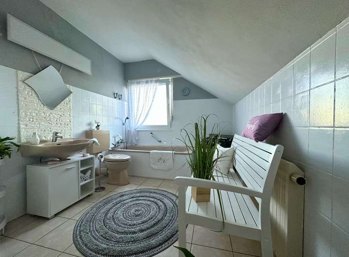 Insgesamt verfügt das Haus über 10 Zimmer, darunter beeindruckende 6 Schlafzimmer, die sich selbstverständlich auch vielseitig anderweitig nutzen lassen und 3 Badezimmer. Die großzügigen Räumlichkeiten bieten viel Platz für eine große Familie oder auch die Möglichkeit für Home-Office Arbeitsplätze. Eine Terrasse lädt dazu ein, die Sonne zu genießen und den Garten zu nutzen. Der Keller bietet zusätzlichen Stauraum und die seniorengerechte Gestaltung des Hauses sorgt dafür, dass Menschen jeden Alters sich hier wohl fühlen.