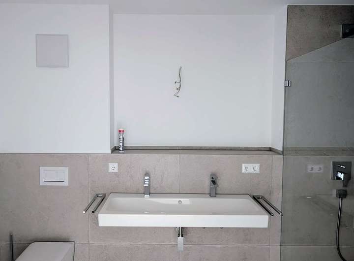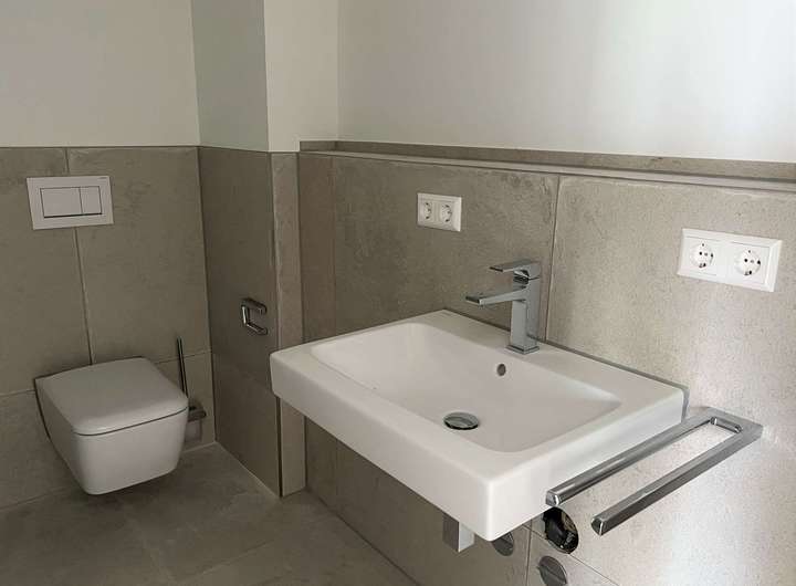 - 1 modernes Bad + Gäste-WC: Hochwertige Ausstattung mit stilvollen Armaturen und viel Platz.