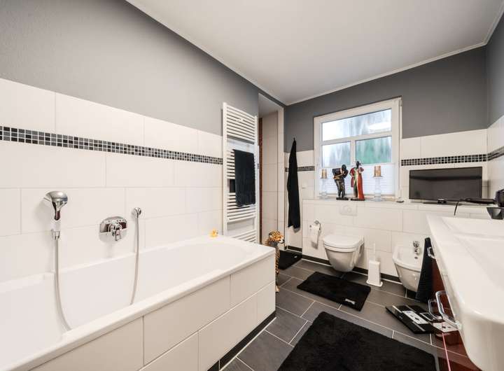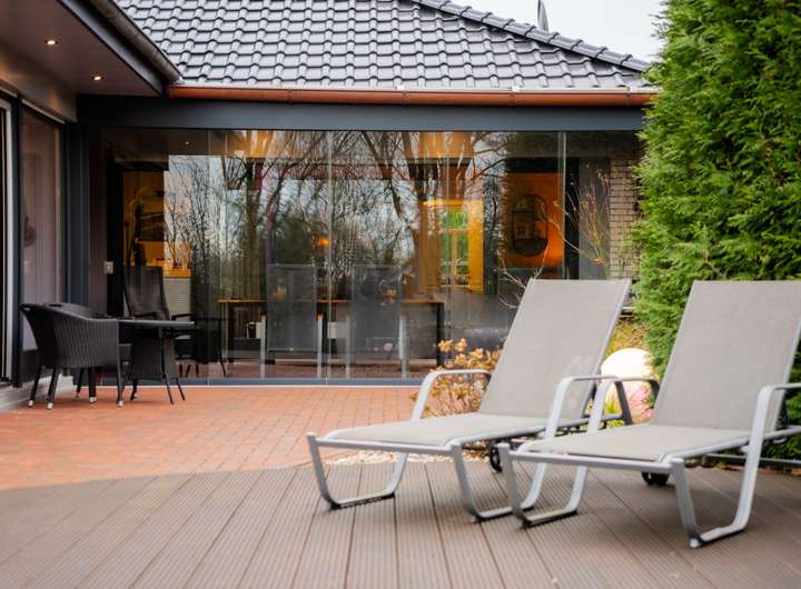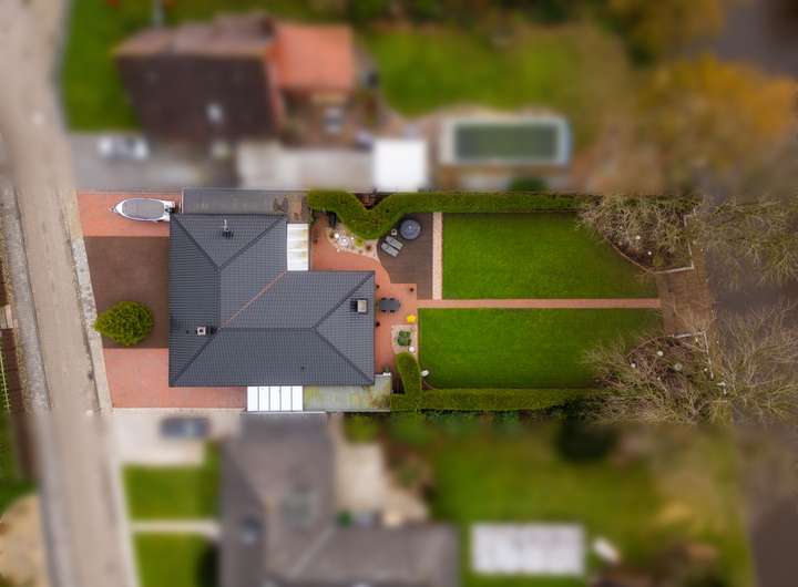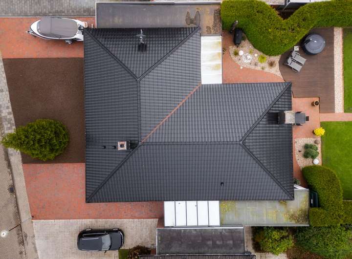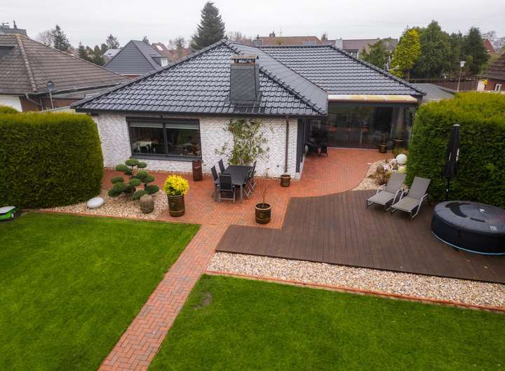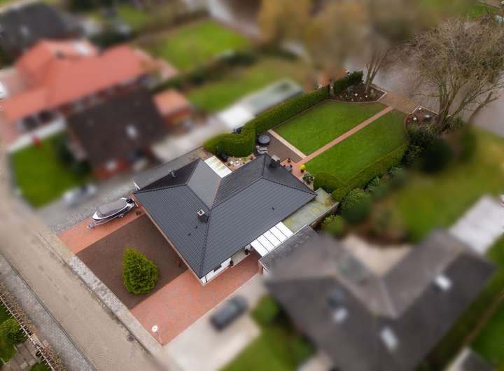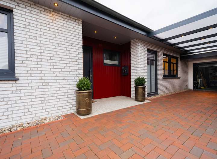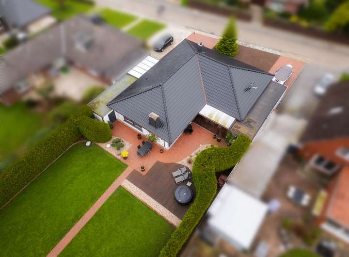 Ein weiterer bedeutender Modernisierungsschritt erfolgte Anfang 2025: Das komplette Dach, sowie alle Verblendungen wurde erneuert, die Geschossdecke hochwertig gedämmt und mit stilvollen schwarzen Dachpfannen eingedeckt. Dadurch präsentiert sich das Bungalow nicht nur optisch zeitgemäß, sondern profitiert zugleich von einer deutlich verbesserten Energieeffizienz.