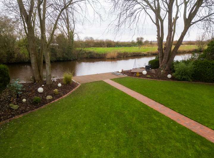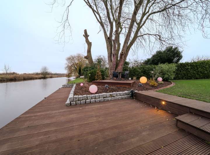 Ein absolutes Highlight ist das Grundstück selbst: Der wunderschöne alte Baumbestand schafft eine intime, natürliche Kulisse, während der eigene Steg mit Anleger ein Privileg darstellt, das nur wenige Immobilien bieten. Von hier aus könnten Sie theoretisch über das Wattenmeer bis zu den ostfriesischen Inseln oder weiter fahren – oder einfach die maritime Idylle auf Ihrer Stegterrasse genießen.