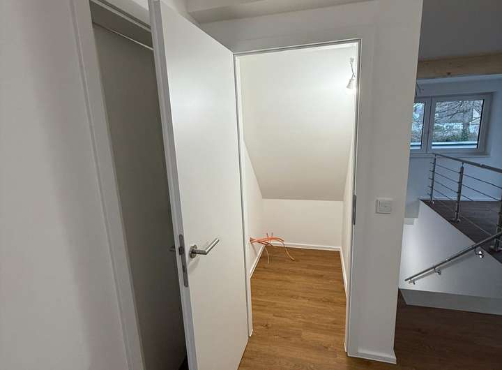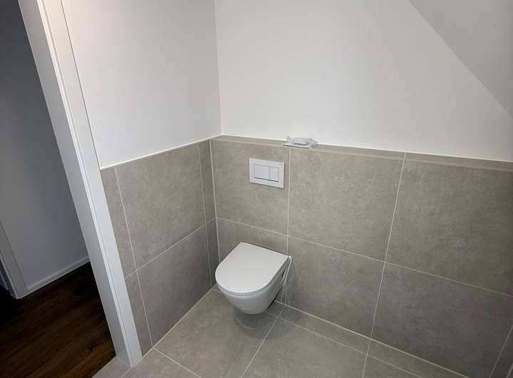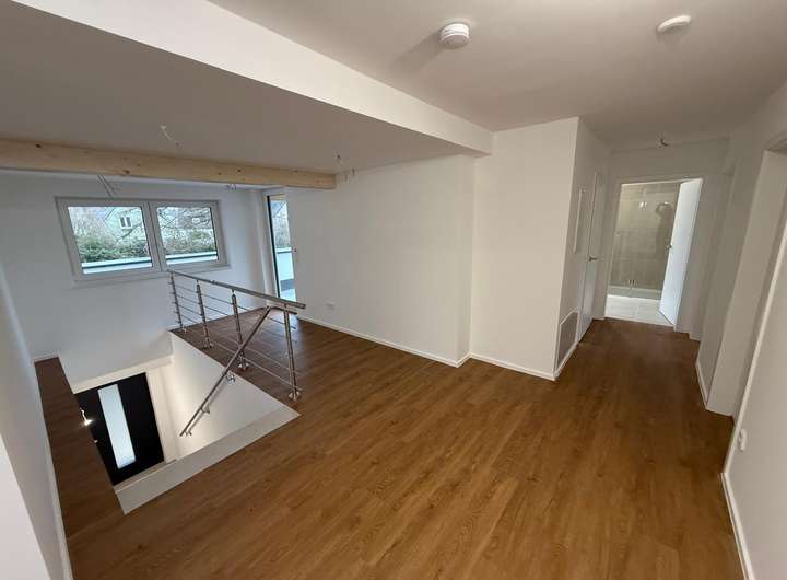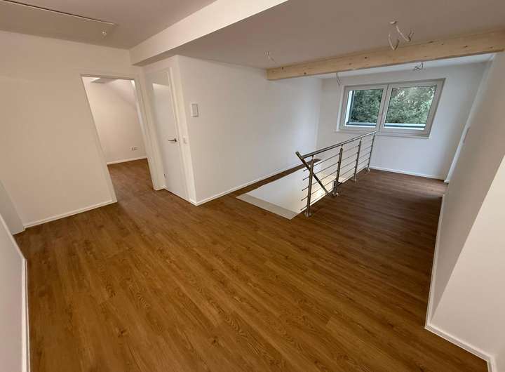 Alle Elektro- und Sanitärleitungen sind auf Neubau-Standard. Sämtliche Räume verfügen über LAN-Steckdosen; die Glasfaseranbindung ist bereits beauftragt – ideal für Home-Office und modernes Arbeiten. Dachterrasse/Balkon sowie der Außenstellplatz werden zeitnah fertiggestellt.