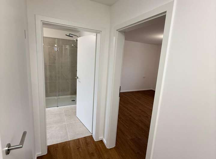 Neben dem Wohnbereich stehen Ihnen ein geräumiges Schlafzimmer mit Platz für Kleiderschränke, separates Büro oder Ankleidezimmer, ein Abstellraum sowie ein modernes Gäste-WC mit Tageslicht zur Verfügung, in dem problemlos Waschmaschine und Trockner integriert werden können.