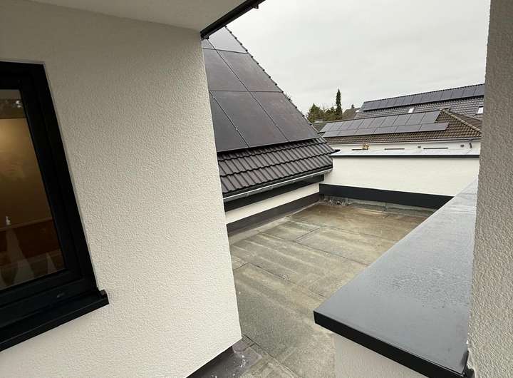 Ein absolutes Highlight ist die großzügige Dachterrasse mit Südausrichtung und teilweiser Überdachung. Sie bietet gleich drei uneinsichtige Aufenthaltsbereiche – perfekt zum Entspannen, Sonnen oder für gemütliche Abende im Freien.