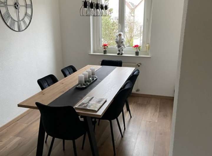 Die Wohnung ist unterteilt in Wohnzimmer, 2 Schlafzimmer, Küche, Esszimmer, Badezimmer, Flur und einen Balkon. Die Küche ist gut ausgestattet und erleichtert Ihnen den Einzug. Ein Keller bietet zusätzlichen Stauraum.